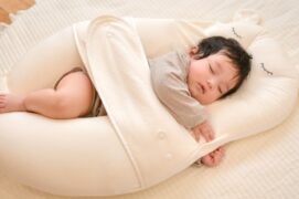 抱っこじゃないと眠れない赤ちゃんへ。まるで腕の中にいるような安心感を、popomiのベビー抱っこ枕で。