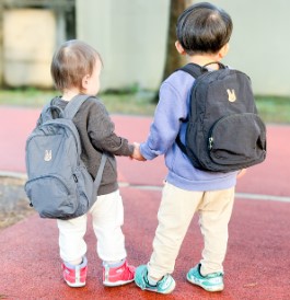 兄弟・姉妹で使いまわせるカラー展開に加え、ポーチ型に畳んで持ち運びできるので、ママバッグにもスッと収納できます。リュック表面に名入れをあえてしない設計で、プライバシー面にも配慮しました。