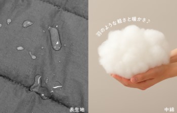 popomiの4WAY防寒ケープは、そんなお出かけシーンでも赤ちゃんをやさしく包み込む、あたたかくて頼れるアイテムです。中綿には抗菌防臭フェイクダウンを採用し、表地は撥水素材と内側にはふんわり極暖素材のポーラーフリース素材で、まるでお布団のようなぬくもりで、体温をやさしくキープします。