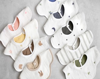 よだれをたっぷり吸収しつつ速乾性にも優れているため、乾きやすいのも特長。こまめなお洗濯や繰り返しの使用にも気持ちよくお使いいただけます。