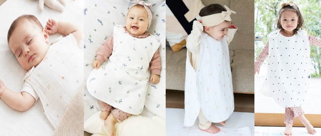 寝返りも安心、寒い夜の寝冷え対策に。ふんわりあたたか、popomiの6重ガーゼスリーパーが新登場!