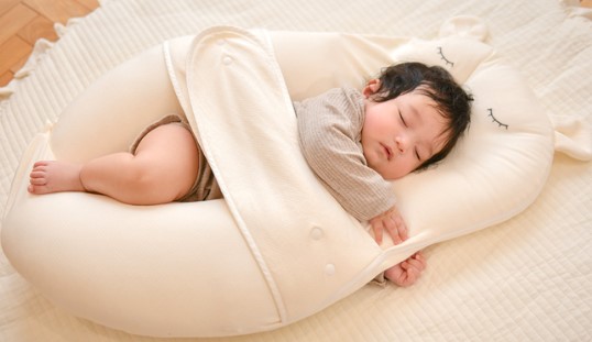 抱っこじゃないと眠れない赤ちゃんへ。まるで腕の中にいるような安心感を、popomiのベビー抱っこ枕で。